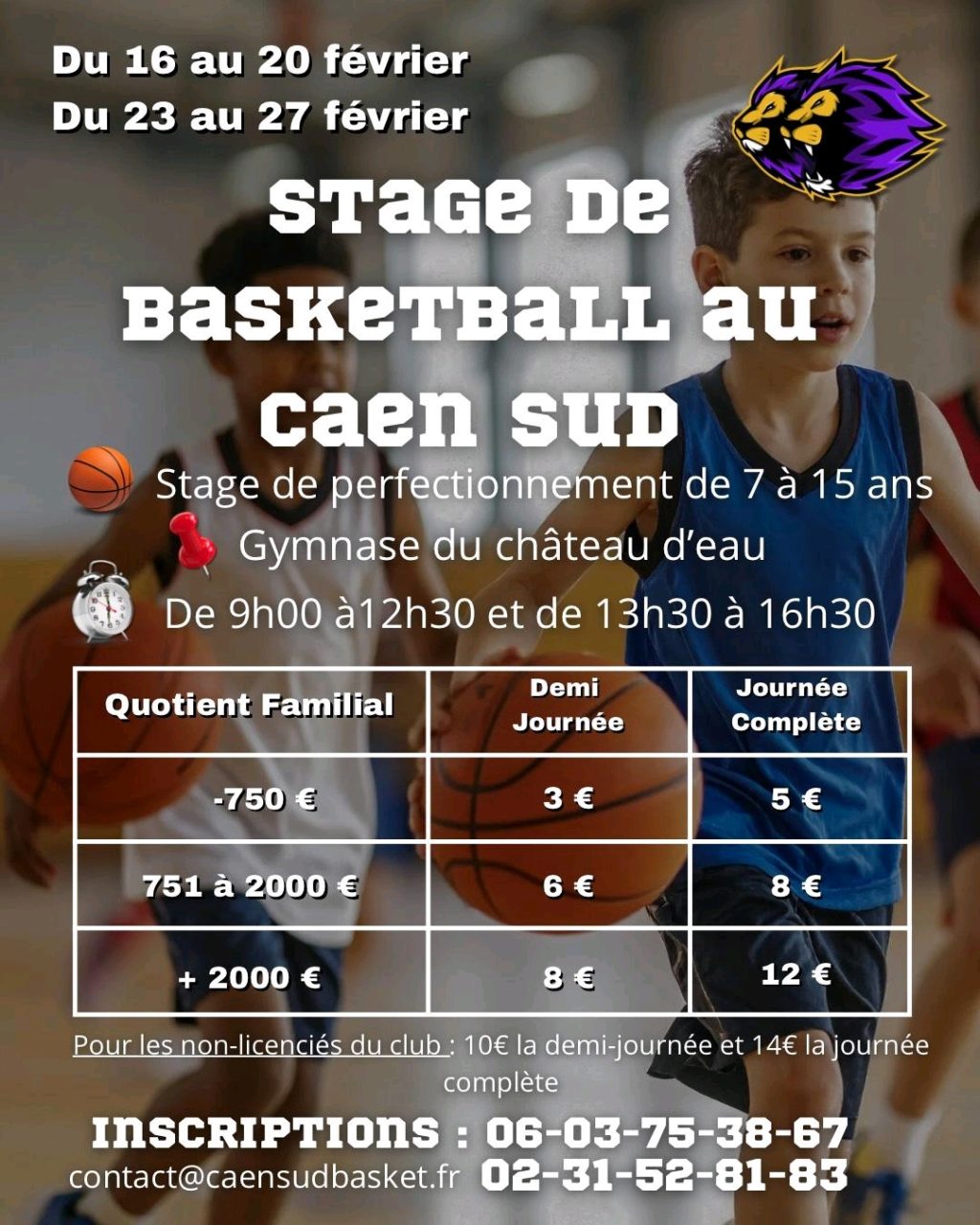 🚨 STAGE DE BASKET – VACANCES DE FÉVRIER Les inscriptions sont OUVERTES pour notre stage de perfectionnement au Caen Sud Basket Pour les jeunes de 7 à 15 ans 📍 Gymnase du Château d’Eau 📅 Du 16 au 20 février et du 23 au 27 février ⏰ 9h00–12h30 / 13h30–16h30 (demi-journée ou journée complète) Travail… Lire la suite