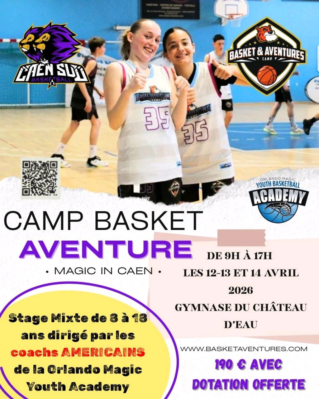Le Camp Basket Aventure arrive à Caen pour trois jours exceptionnels autour du basket, du partage et du dépassement de soi. Les 12, 13 et 14 avril 2026, de 9h à 17h, le Gymnase du Château d’Eau accueillera un stage mixte ouvert aux jeunes de 8 à 18 ans, désireux de progresser tout en vivant… Lire la suite